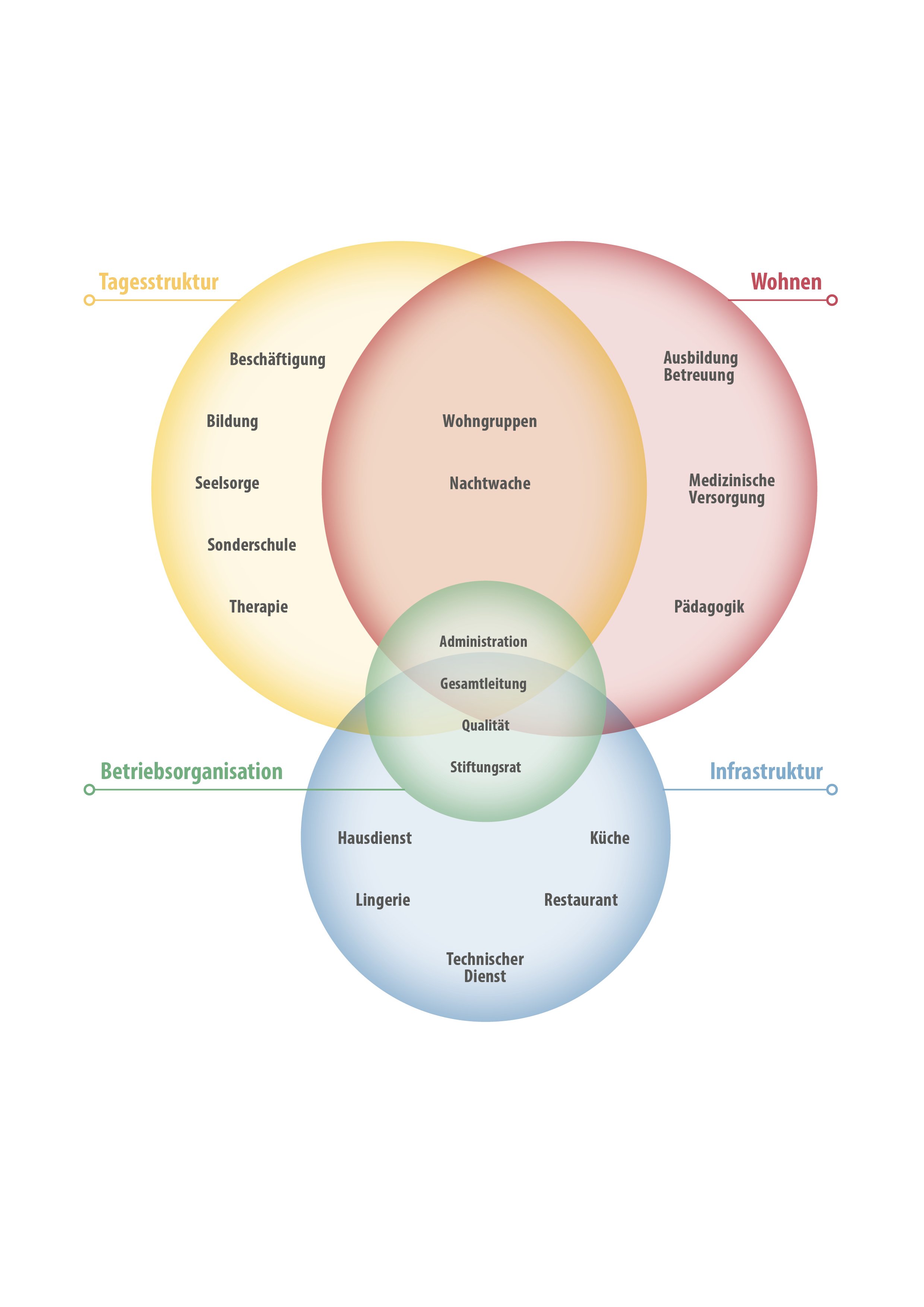 Bietet den Bewohnenden einen Lebensraum, in dem sie sich individuell entfalten können – mit pädagogischer, pflegerischer und medizinischer Betreuung.